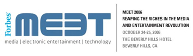 I’ll be attending Forbes’ MEET 2006 conference (Media | Electronic Entertainment | Technology) in Beverly Hills. The theme of the October 24-25 conference will be: Reaping Riches in the Media and Entertainment Revolution.